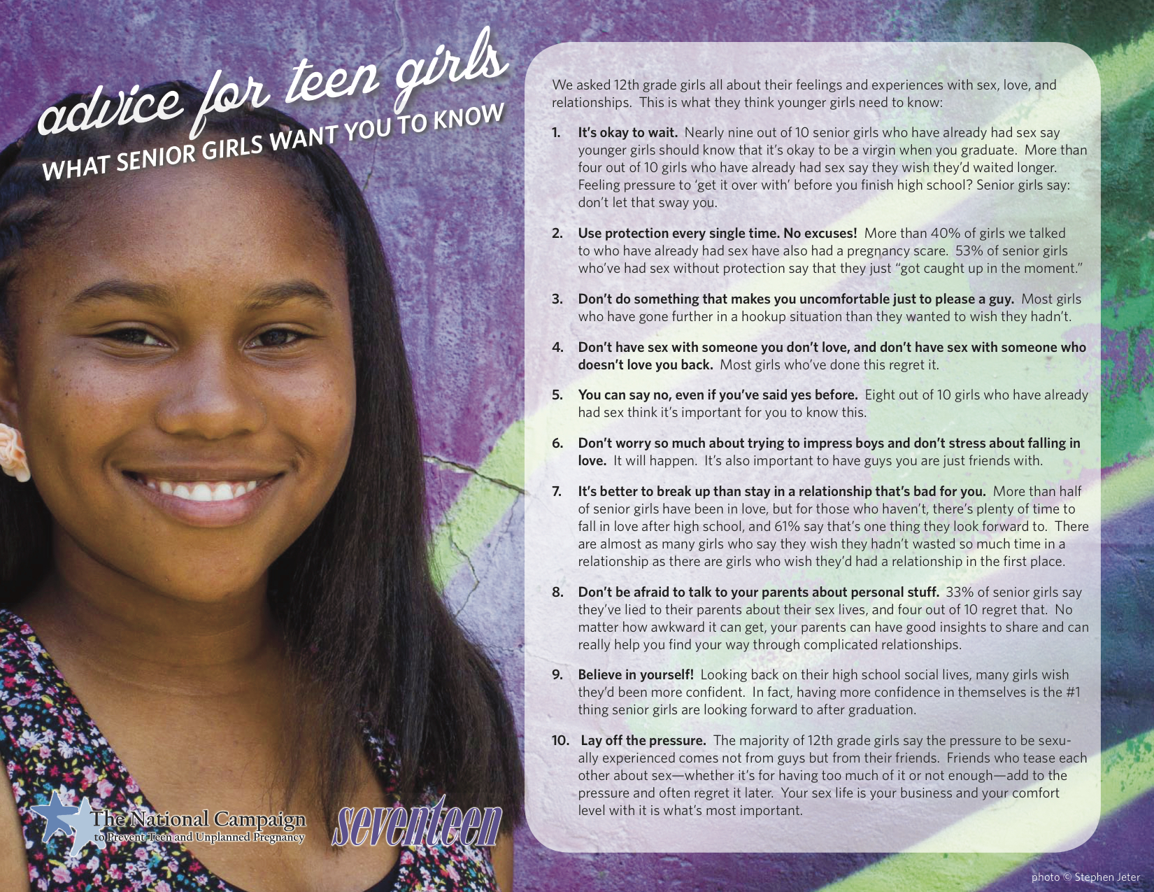 12th Grade girls were asked about their feelings and experiences with sex, love and relationships. Here’s what they think younger girls need to know…